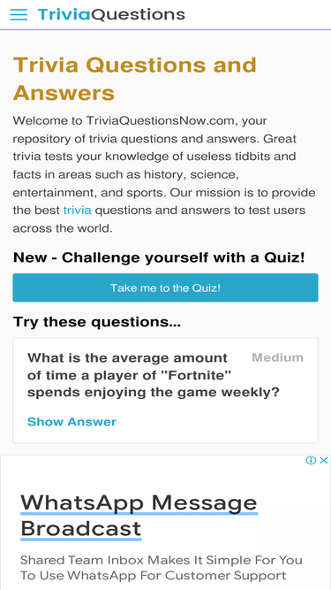 Every time you play fto's daily trivia game, a piece of plastic is removed from the ocean. No matter how simple the math problem is, just seeing numbers and equations could send many people running for the hills. Sustainable coastlines hawaii the ocean is a powerful force. Do you know the secrets of sewing? Buzzfeed editor keep up with the latest daily buzz with the buzzfeed daily newsletter! One of the best ways to challenge our mind is through trick questions. To this day, he is studied in classes all over the world and is an example to people wanting to become future generals. A few centuries ago, humans began to generate curiosity about the possibilities of what may exist outside the land they knew. Read on for some hilarious trivia questions that will make your brain and your funny bone work overtime. Trick questions are not just beneficial, but fun too! If you fail, then bless your heart. For many people, math is probably their least favorite subject in school. This conflict, known as the space race, saw the emergence of scientific discoveries and new technologies.